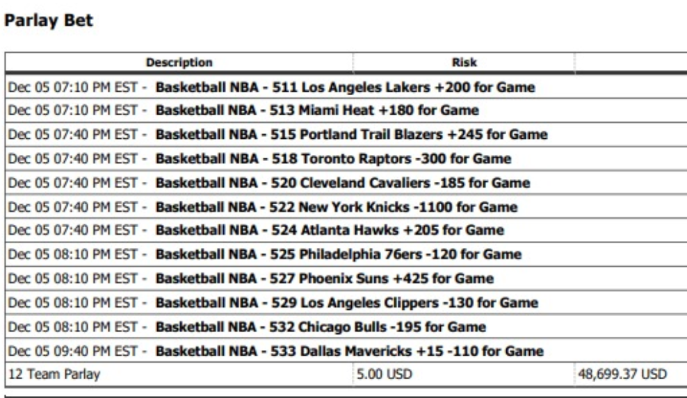 This 12-leg construction is designed to maximize potential return through aggressive underdog selection, anchored by high-probability favorites. If every single one of these picks lands, the $5.00 risk pays out $48,699.37.