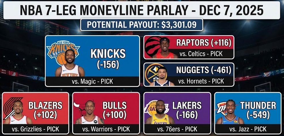 It’s a high-risk, high-reward play, but the combination of heavy favorites (Nuggets, Thunder) with value dogs (Raptors, Blazers) gives us a fighting chance at a huge payday. Good luck!